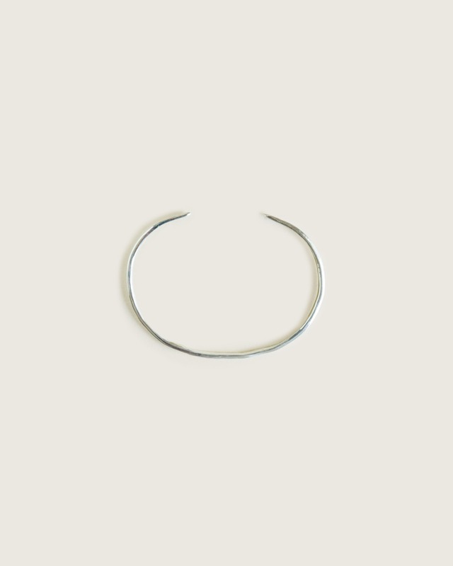 *こちらのアイテムは、ご入金後10日以内に発送します。 *こちらのアイテムは、一部のサイズ限定で返品、交換が可能です。 (【返品/交換可能】と記載のあるサイズ、カラーのみ対象) ・サイズが不安な方 ・カスタムオーダーの前の実物確認として ぜひお気軽にご利用ください。 返品、交換の条件につきましては、下記をご参照ください。 https://yursula.theshop.jp/p/00013 *購入前に、ショッピングガイドを必ずご一読ください。 https://yursula.theshop.jp/p/00005 ・純銀製/ 割金、ロウ付けによる銅、亜鉛などを排除し、金属アレルギーに配慮 ・地金を叩いて出した、歪なテクスチャ ・日本国内での鋳造、制作 ・軽く開閉しご自身で調整いただけます。(無理に何度も曲げ伸ばしするのは、破損の原因になりますのでおやめください。) <サイズ> 幅、厚み2.2~2.5mm程度 手首の一番細いところ ぐるりの寸法より、+2cm程度がおすすめです。 S 全長 約16cm 開口部 2.3cm M 全長 約17cm 開口部 2.5cm L 全長 約18.5cm 開口部 2.8cm L 全長 約19.5cm 開口部 2.8cm XL 全長 約20.5cm 開口部 3cm その他、最長25cmまで、ご希望のサイズでお作りします。(サイズオーダー品は返品不可) 重さ 約7g(Mサイズ時) <素材> silver999(純銀) 硫化や塩化により黒ずむ場合がございます。自然な経年変化をお楽しみください。 気になる場合は、ご自宅で簡単にクリーニング頂けるほか、当方にてメンテナンスも可能です。下記をご参照ください。 https://yursulasolid.com/about <デザイナーより> シンプルで使いやすい細めのチョーカー。いびつな表面感ですが、あまり強い凹凸にならよう、使いやすく程よい塩梅に調整しています。ほどよい主張がありつつ、着る人の個性に合わせて肌に馴染んでいく感覚のチョーカーです。1点ずつ手で叩いて整形しているので、全く同じものは2つとないのも魅力。あなただけの一本として大切に育てていただけると嬉しいです。 <注意点> □発送時期について 商品ページ上部をご覧ください。 通常販売商品でも、異なる納期のものを一緒にオーダー頂いた場合、後の納期のアイテムにまとめさせて頂きます。別々に発送をご希望の場合は、1点ずつご購入をお願いします。 受注制作につき、お届けまでに時間がかかりますので、ご確認をお願いします。 予約商品と、通常販売商品は同時にカートに入れていただくことができません。 大変お手数ですが、別々にご購入をお願いします。 □受注制作につき、オーダー後のキャンセルは不可となります。(一部サイズ、カラーを除く) □全ての方に必ずアレルギーが出ないとは限りません。異常を感じた場合は、直ちに使用を中止し、医師の診断を受けてください。 □1つずつ手作業でお作りしています。できるだけ丁寧にお作りしましたが、多少の歪みや小傷がある場合があります。ご了承ください。