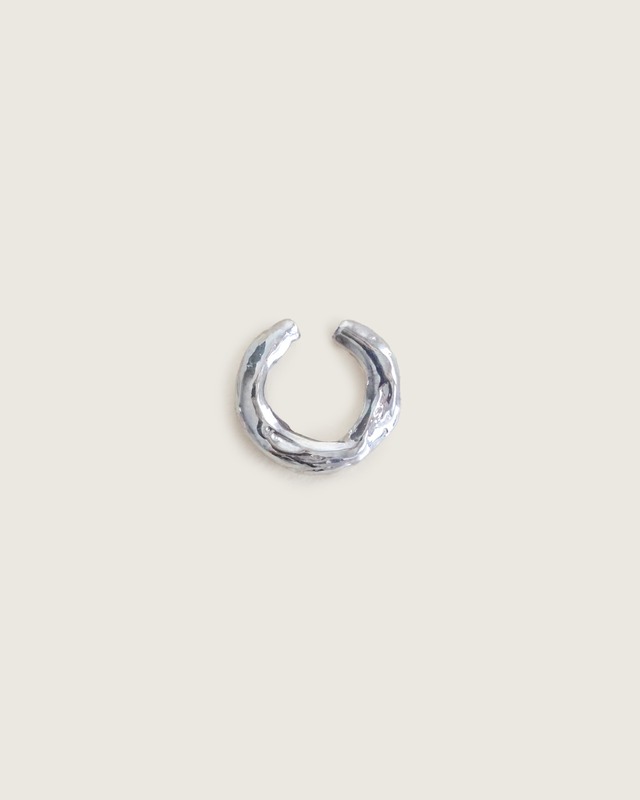 *こちらのアイテムは、予約販売です。 発送時期をご確認の上、オーダーをお願いします。 *こちらのアイテムは、返品、交換が可能です。 ぜひお気軽にご利用ください。 返品、交換の条件につきましては、下記をご参照ください。 https://yursula.theshop.jp/p/00013 *購入前に、ショッピングガイドを必ずご一読ください。 https://yursula.theshop.jp/p/00005 ・純銀製/ 割金、ロウ付けによる銅、亜鉛などを排除し、金属アレルギーに配慮 ・ピアスホール無しでも着用できるイヤーカフ。耳たぶより軟骨部分にスライドし、軟骨の凹凸部分に引っ掛けて着用します。 ・日本国内での鋳造、制作 *片耳分(1個)の価格です。 同シリーズのアイテムはこちら https://yursulasolid.com/?category_id=6361912af80f1e20c2fe1a99 <サイズ> 横 約17mm x縦 約16mm 開口部 約3mm 重さ 約3g(片耳) <素材> 本体 silver999(純銀) 硫化や塩化により黒ずむ場合がございます。自然な経年変化をお楽しみください。 気になる場合は、ご自宅で簡単にクリーニング頂けるほか、当方にてメンテナンスも可能です。下記をご参照ください。 https://yursulasolid.com/about <デザイナーより> さっと着用できてポイントになるイヤーカフ。いびつで有機的なテクスチャを与えることで、他とは少し違った表情に。ほどよいボリュームで、毎日着けたくなるデザインです。 <注意点> □発送時期について 商品ページ上部をご参照ください。 受注制作につき、お届けまでに時間がかかりますので、ご確認をお願いします。 予約商品と、通常販売商品は同時にカートに入れていただくことができません。 大変お手数ですが、別々にご購入をお願いします。 □受注制作につき、オーダー後のキャンセルは不可となります。(一部サイズ、カラーを除く) □全ての方に必ずアレルギーが出ないとは限りません。異常を感じた場合は、直ちに使用を中止し、医師の診断を受けてください。 □1つずつ手作業でお作りしています。できるだけ丁寧にお作りしましたが、多少の歪みや小傷がある場合があります。ご了承ください。