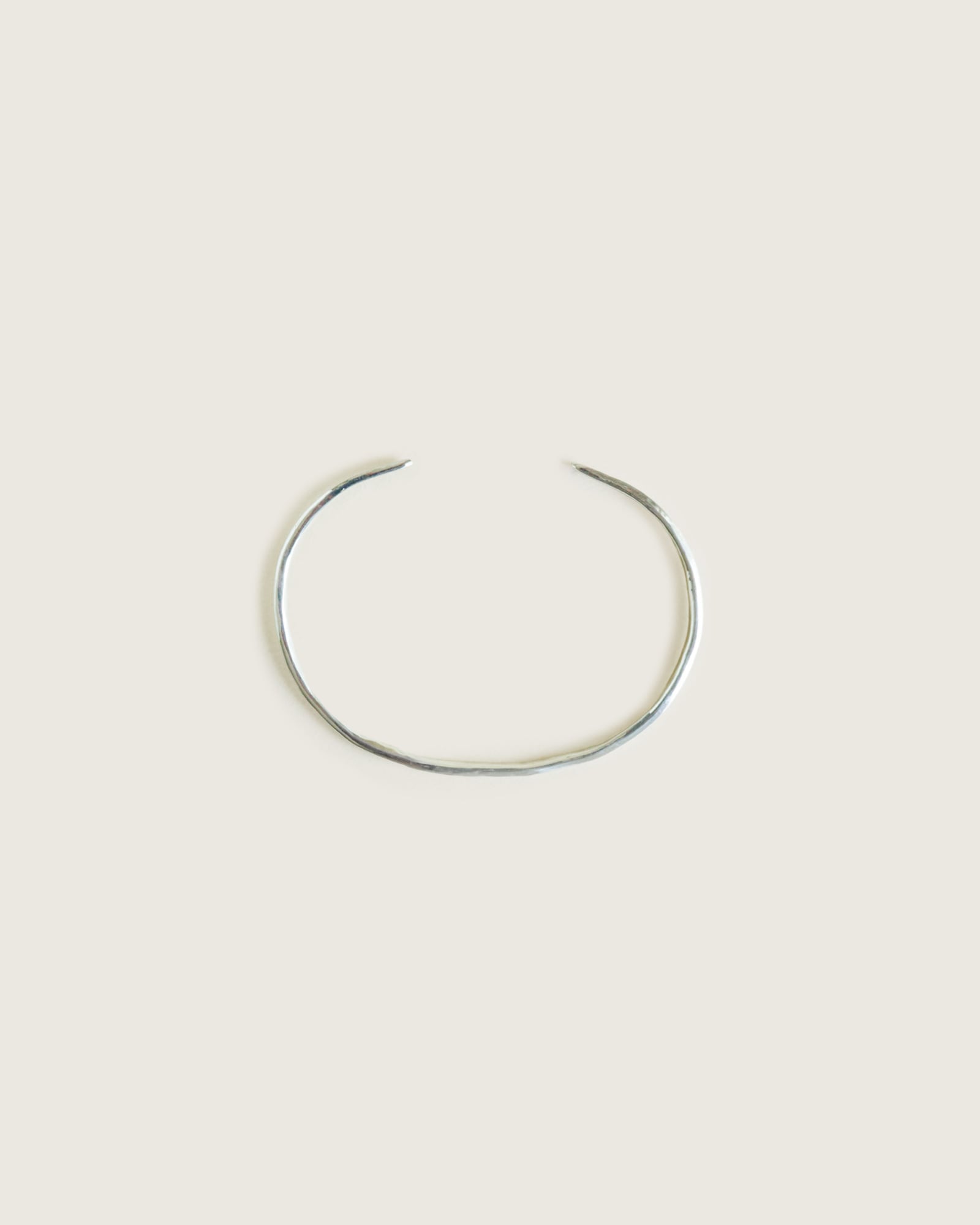 シンプルで使いやすい細めのチョーカー。いびつな表面感ですが、あまり強い凹凸にならよう、使いやすく程よい塩梅に調整しています。ほどよい主張がありつつ、着る人の個性に合わせて肌に馴染んでいく感覚のチョーカーです。1点ずつ手で叩いて整形しているので、全く同じものは2つとないのも魅力。あなただけの一本として大切に育てていただけると嬉しいです。