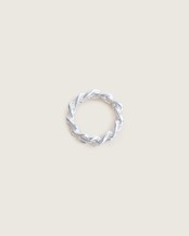 ラウンドカーブチェーンをかたどったリング。チェーンのコマが固定されているので、着脱がスムーズで着け心地も良いです。太すぎず、程よいボリュームとチェーンならではの隙間による抜け感のあるデザインは、一本ではもちろん、重ね付けにも重宝します。