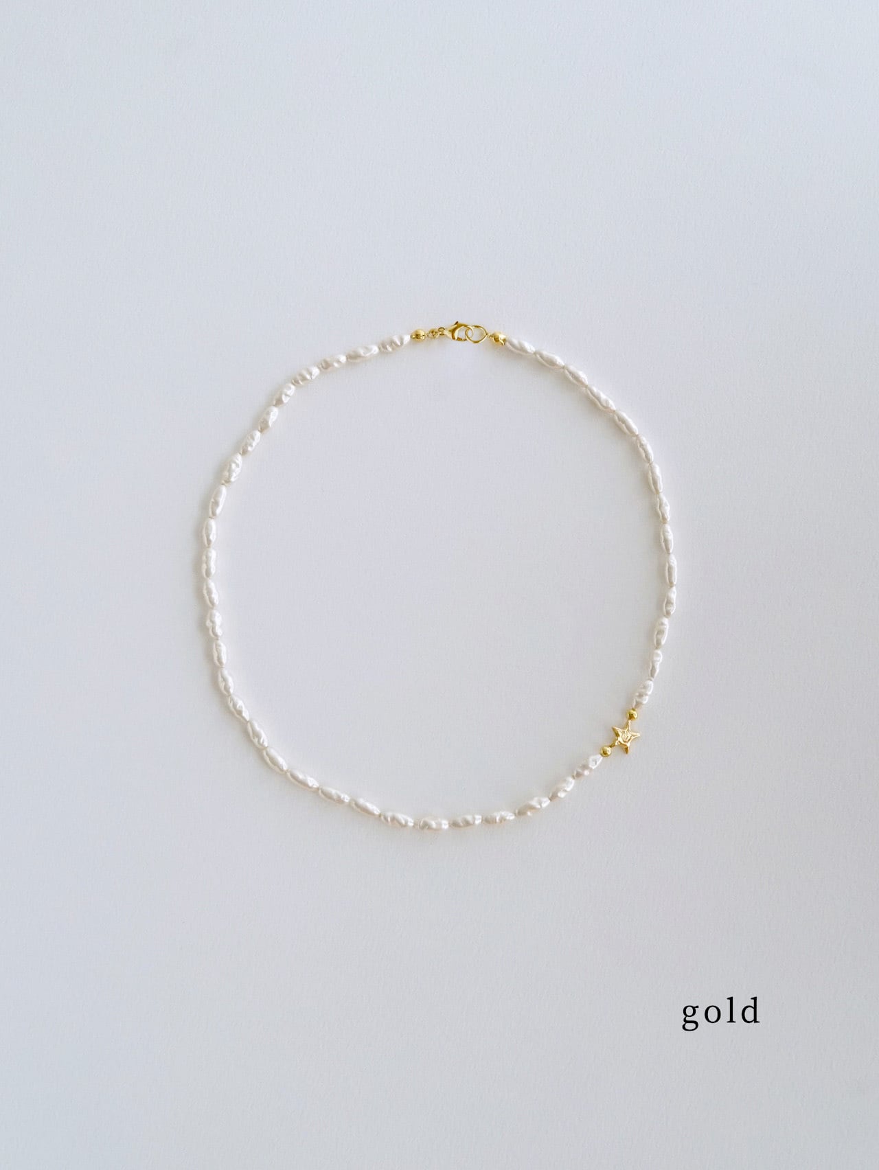 人気のスターモチーフと、国産ガラスパールを組み合わせたネックレス。