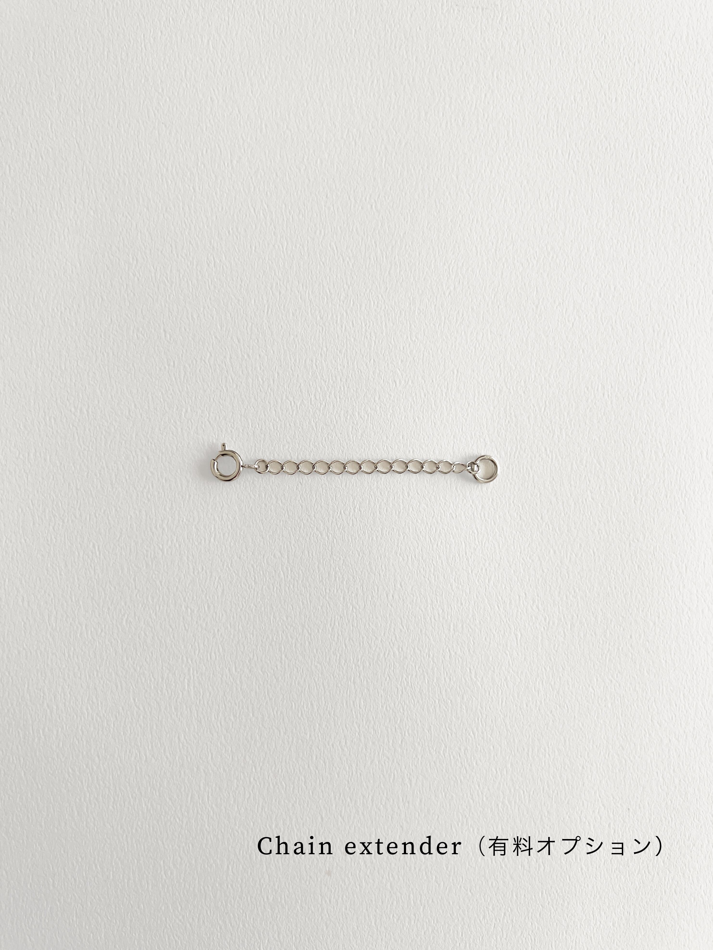 洋服や、重ね付けのアイテムに合わせてご自身で長さを調節できる仕様にしたい方は、有料オプションのチェーンエクステンダーをお選びください。